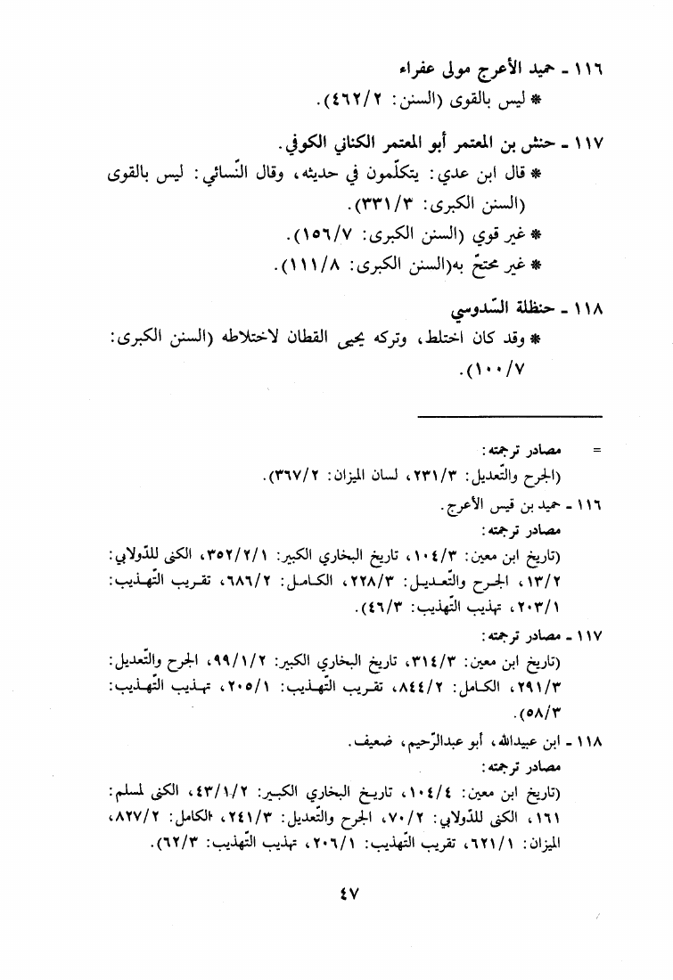 نام کتاب : معجم الجرح والتعديل لرجال السنن الكبرى مع دراسة إضافية لمنهج البيهقي في نقد الرواة في ضوء السنن الكبرى نویسنده : نجم عبد الرحمن خلف جلد : 1 صفحه : 47