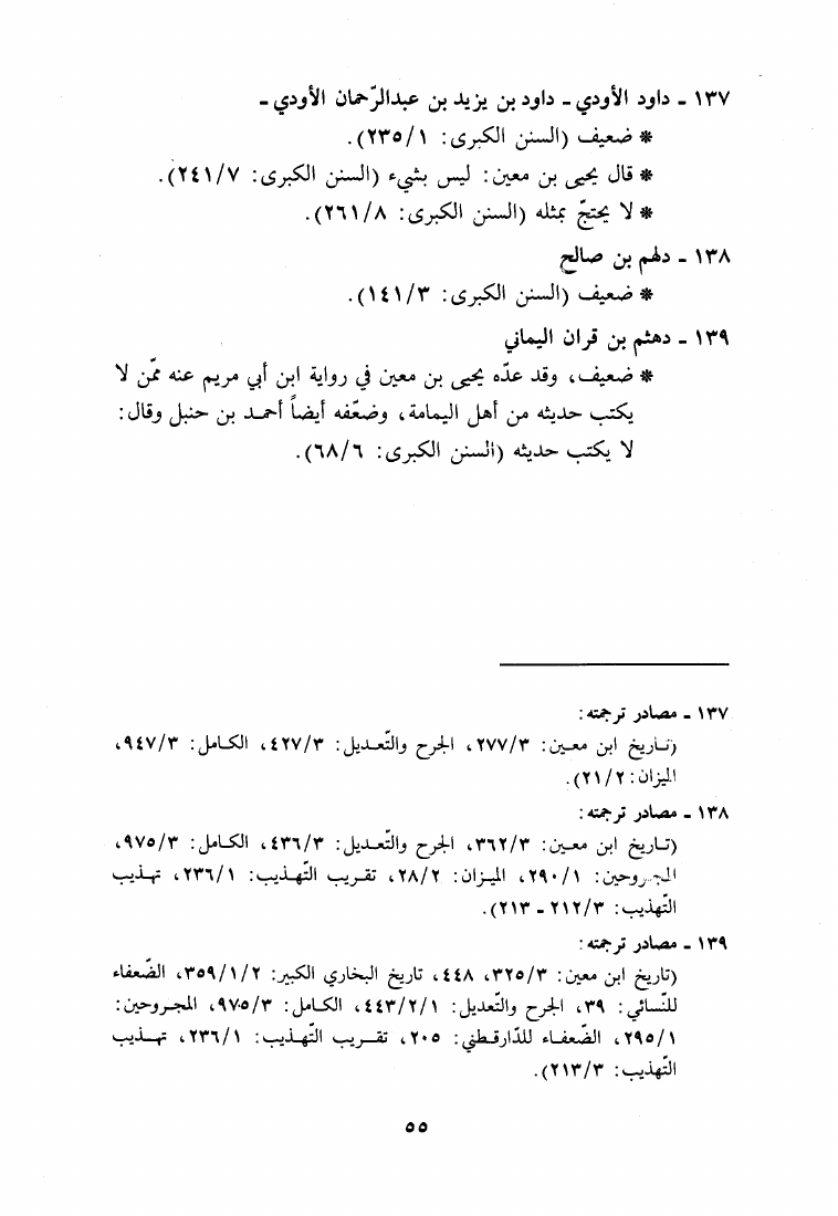 نام کتاب : معجم الجرح والتعديل لرجال السنن الكبرى مع دراسة إضافية لمنهج البيهقي في نقد الرواة في ضوء السنن الكبرى نویسنده : نجم عبد الرحمن خلف جلد : 1 صفحه : 55