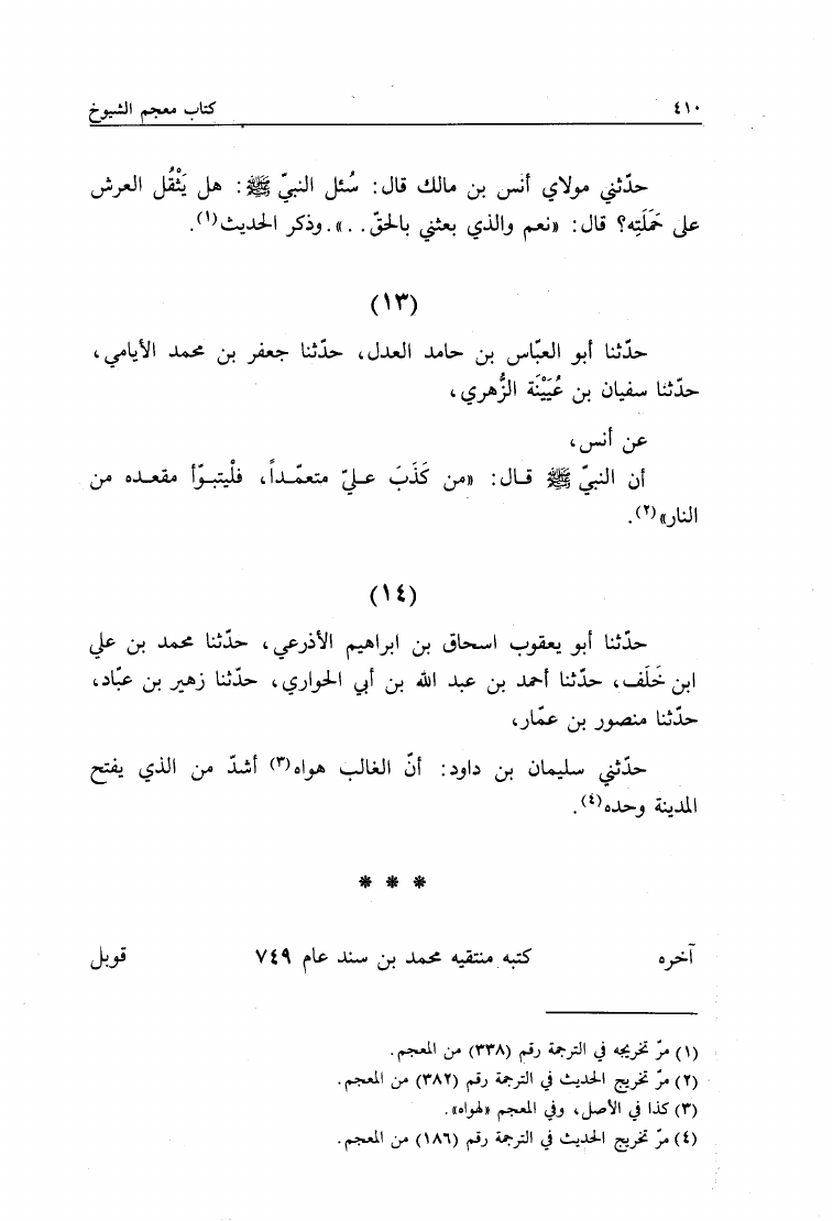 معجم الشيوخ، وبذيله المنتقى من المعجم وحديث السكن بن جميع