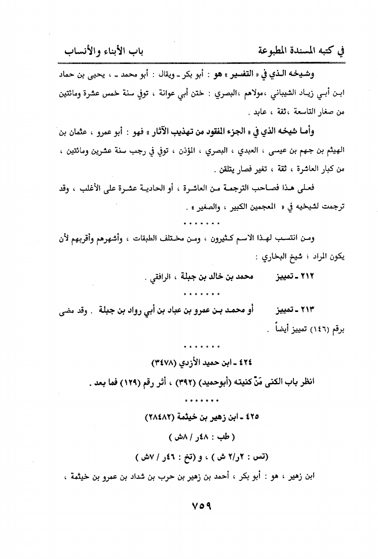 معجم شيوخ الطبري الذين روى عنهم في كتبه المسندة المطبوعة