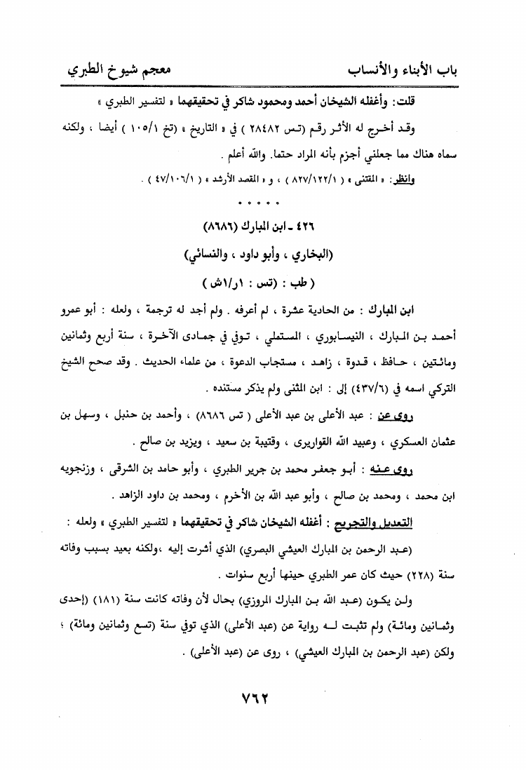 معجم شيوخ الطبري الذين روى عنهم في كتبه المسندة المطبوعة