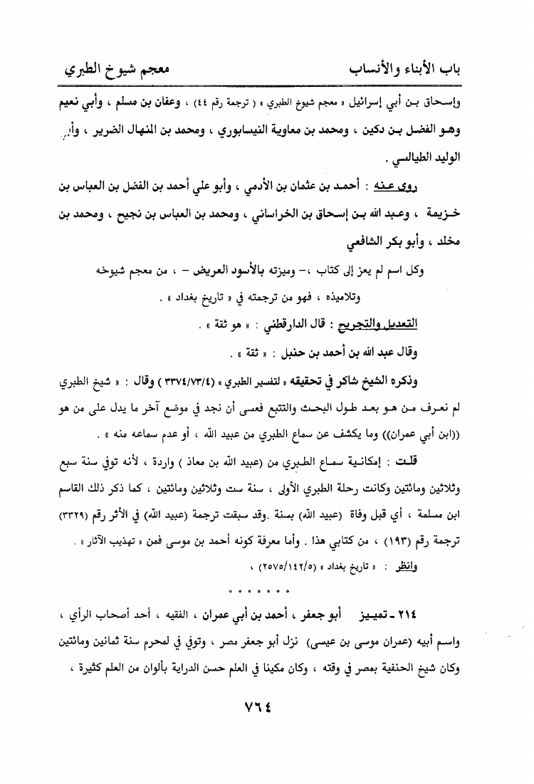معجم شيوخ الطبري الذين روى عنهم في كتبه المسندة المطبوعة