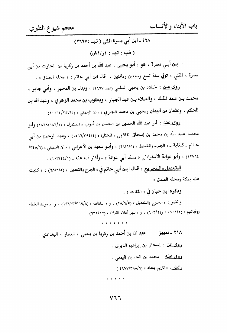 معجم شيوخ الطبري الذين روى عنهم في كتبه المسندة المطبوعة