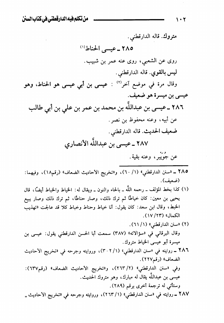 نام کتاب : من تكلم فيه الدارقطني في كتاب السنن من الضعفاء والمتروكين والمجهولين (ط. أوقاف قطر) نویسنده : محمد بن عبد الرحمن بن محمد ابن زريق جلد : 1 صفحه : 102