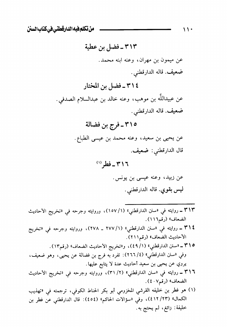نام کتاب : من تكلم فيه الدارقطني في كتاب السنن من الضعفاء والمتروكين والمجهولين (ط. أوقاف قطر) نویسنده : محمد بن عبد الرحمن بن محمد ابن زريق جلد : 1 صفحه : 110