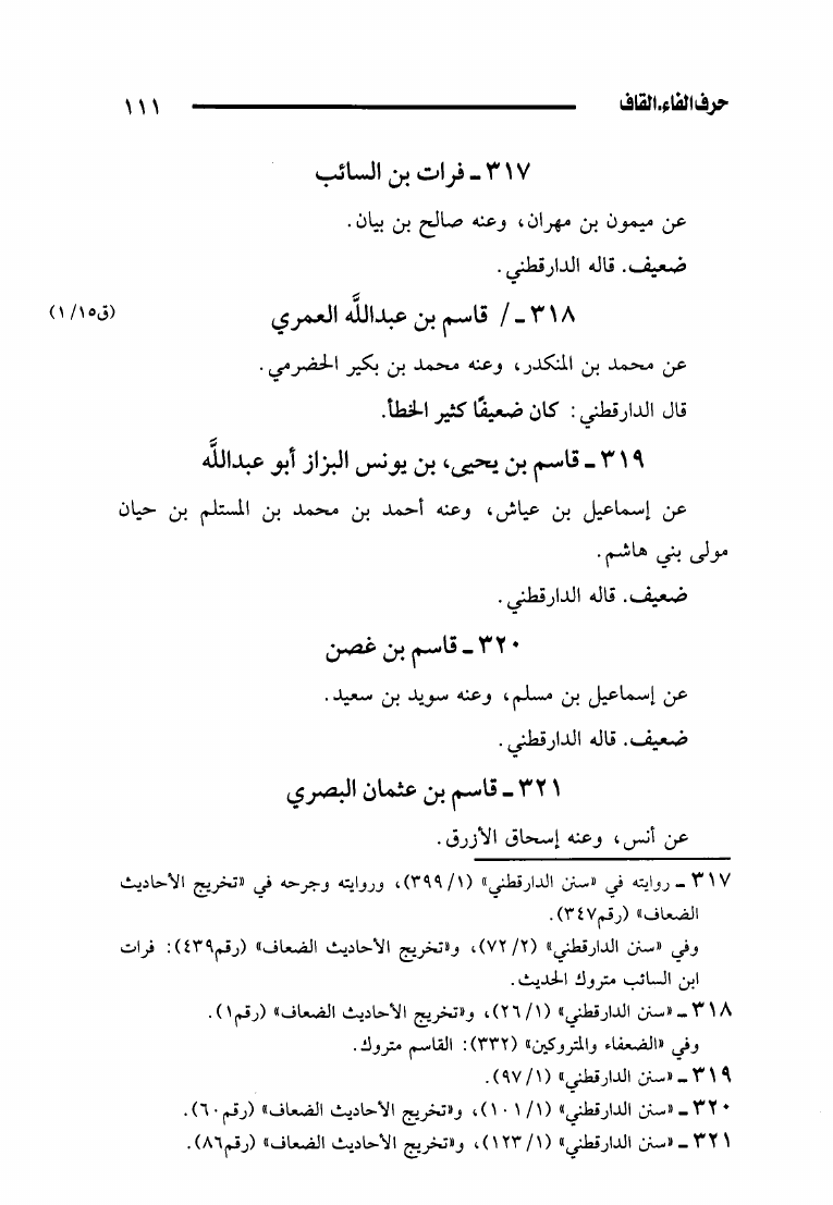 نام کتاب : من تكلم فيه الدارقطني في كتاب السنن من الضعفاء والمتروكين والمجهولين (ط. أوقاف قطر) نویسنده : محمد بن عبد الرحمن بن محمد ابن زريق جلد : 1 صفحه : 111