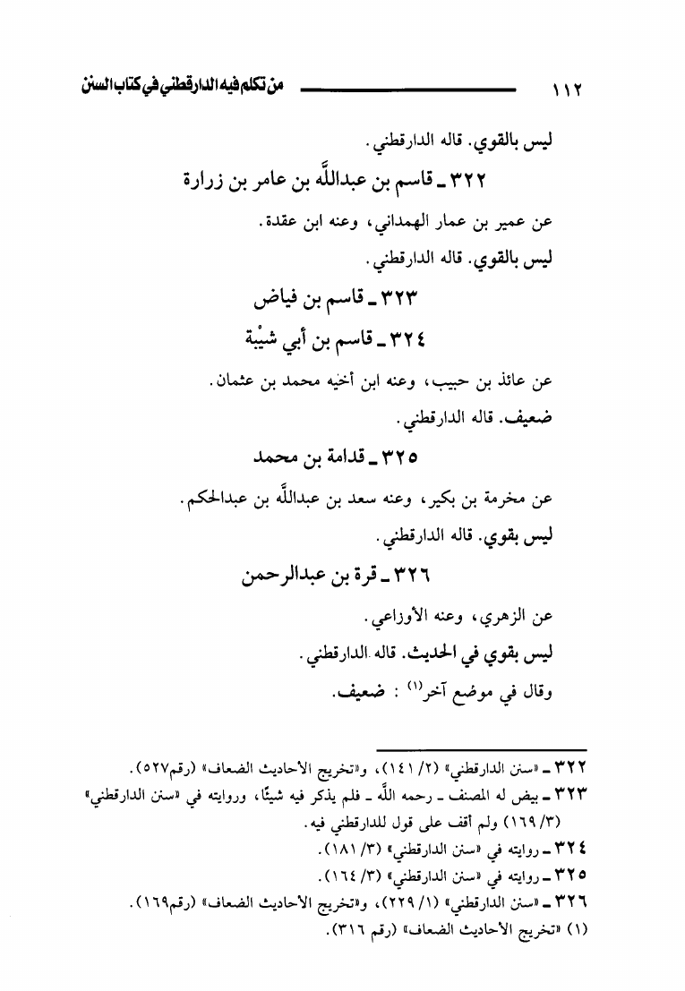 نام کتاب : من تكلم فيه الدارقطني في كتاب السنن من الضعفاء والمتروكين والمجهولين (ط. أوقاف قطر) نویسنده : محمد بن عبد الرحمن بن محمد ابن زريق جلد : 1 صفحه : 112