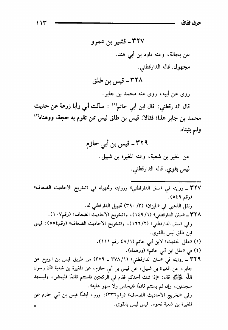 نام کتاب : من تكلم فيه الدارقطني في كتاب السنن من الضعفاء والمتروكين والمجهولين (ط. أوقاف قطر) نویسنده : محمد بن عبد الرحمن بن محمد ابن زريق جلد : 1 صفحه : 113