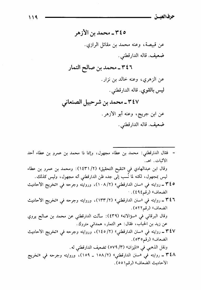 نام کتاب : من تكلم فيه الدارقطني في كتاب السنن من الضعفاء والمتروكين والمجهولين (ط. أوقاف قطر) نویسنده : محمد بن عبد الرحمن بن محمد ابن زريق جلد : 1 صفحه : 119
