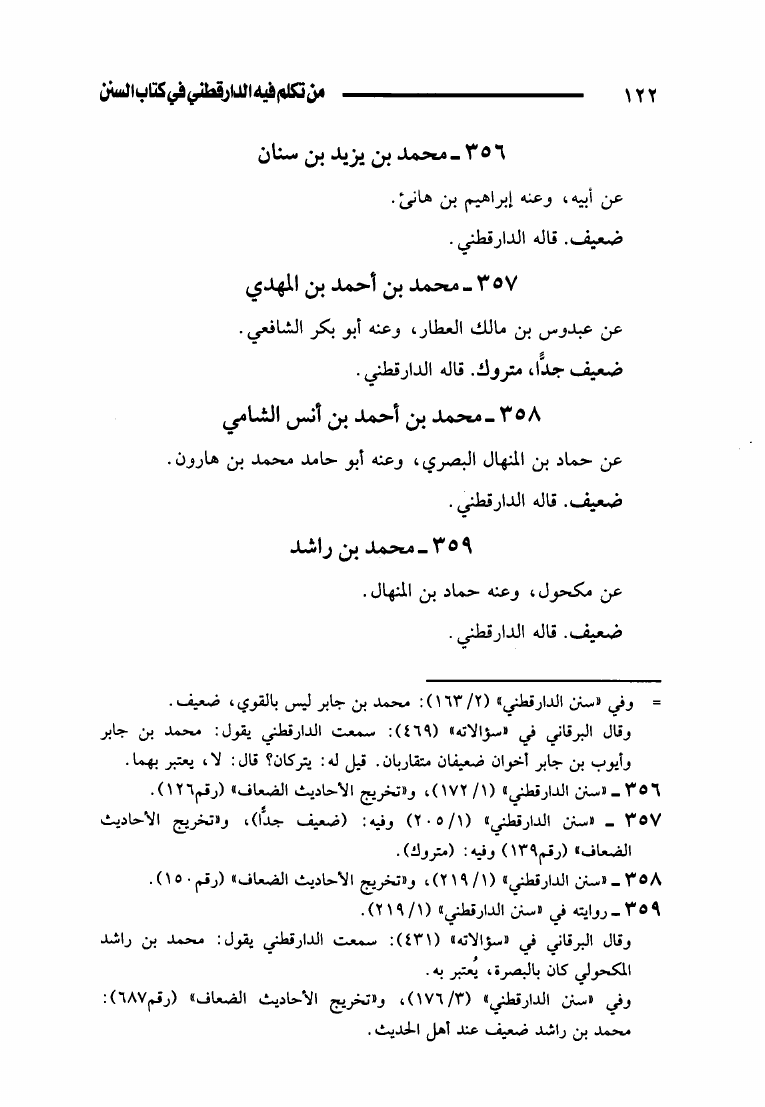 نام کتاب : من تكلم فيه الدارقطني في كتاب السنن من الضعفاء والمتروكين والمجهولين (ط. أوقاف قطر) نویسنده : محمد بن عبد الرحمن بن محمد ابن زريق جلد : 1 صفحه : 122