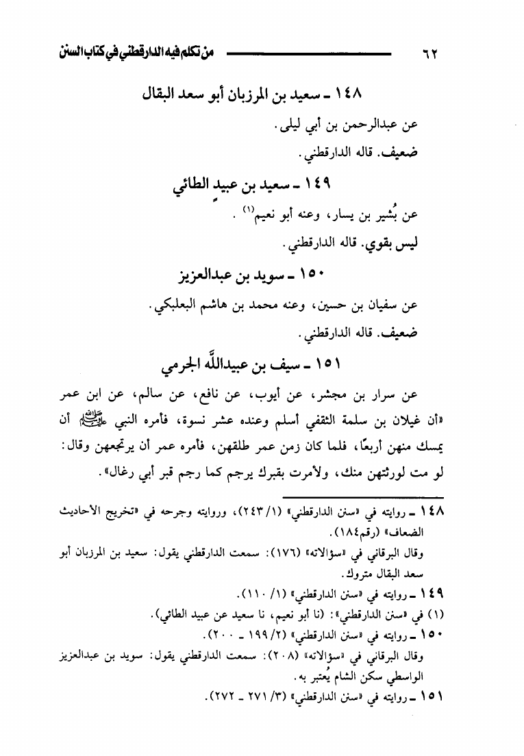 نام کتاب : من تكلم فيه الدارقطني في كتاب السنن من الضعفاء والمتروكين والمجهولين (ط. أوقاف قطر) نویسنده : محمد بن عبد الرحمن بن محمد ابن زريق جلد : 1 صفحه : 62