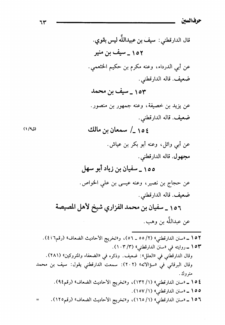 نام کتاب : من تكلم فيه الدارقطني في كتاب السنن من الضعفاء والمتروكين والمجهولين (ط. أوقاف قطر) نویسنده : محمد بن عبد الرحمن بن محمد ابن زريق جلد : 1 صفحه : 63
