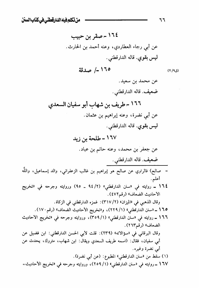 نام کتاب : من تكلم فيه الدارقطني في كتاب السنن من الضعفاء والمتروكين والمجهولين (ط. أوقاف قطر) نویسنده : محمد بن عبد الرحمن بن محمد ابن زريق جلد : 1 صفحه : 66