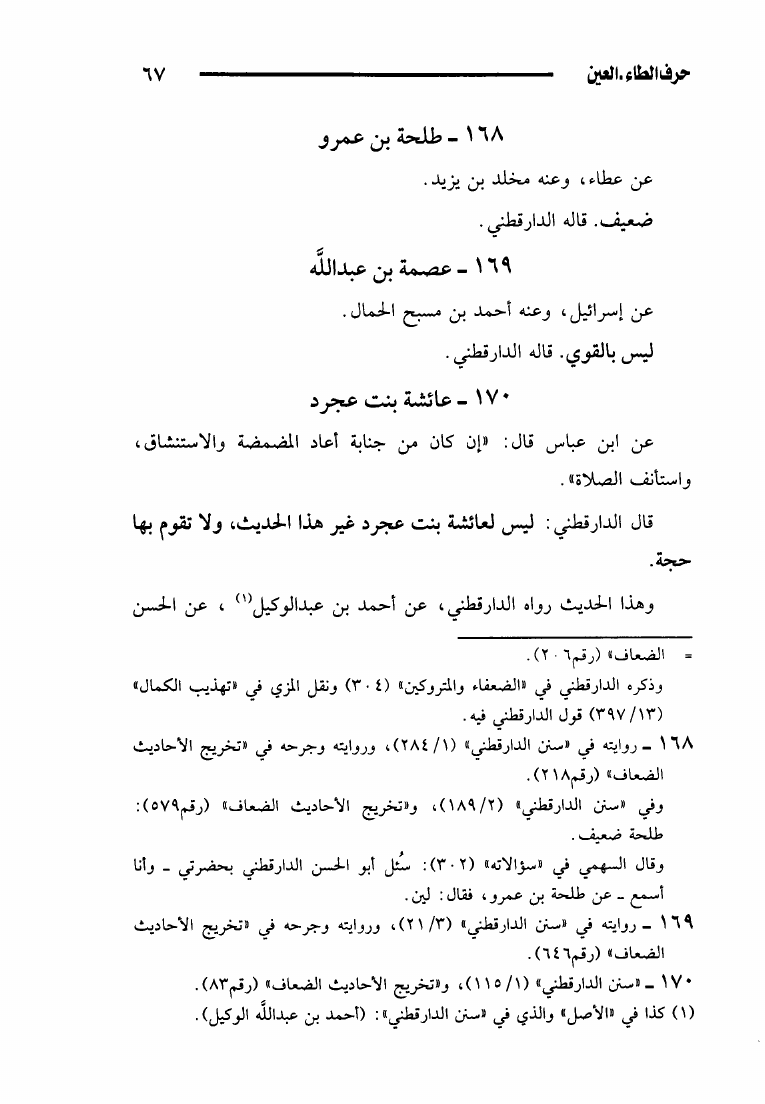 نام کتاب : من تكلم فيه الدارقطني في كتاب السنن من الضعفاء والمتروكين والمجهولين (ط. أوقاف قطر) نویسنده : محمد بن عبد الرحمن بن محمد ابن زريق جلد : 1 صفحه : 67