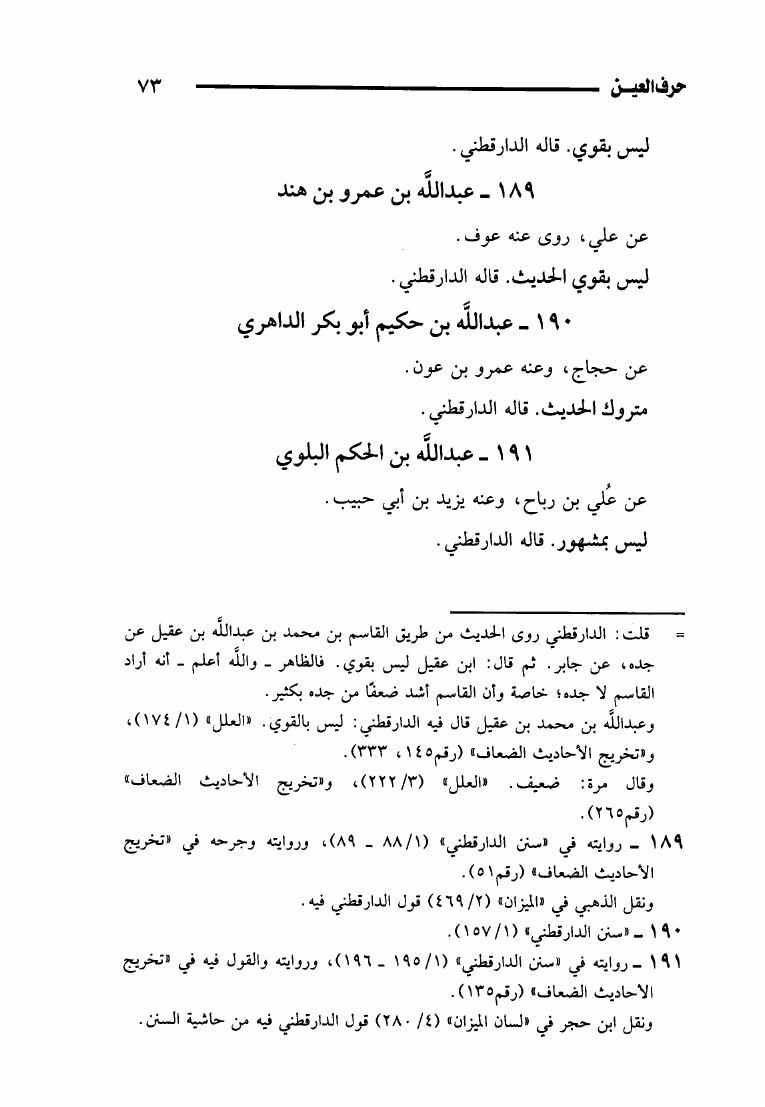 نام کتاب : من تكلم فيه الدارقطني في كتاب السنن من الضعفاء والمتروكين والمجهولين (ط. أوقاف قطر) نویسنده : محمد بن عبد الرحمن بن محمد ابن زريق جلد : 1 صفحه : 73