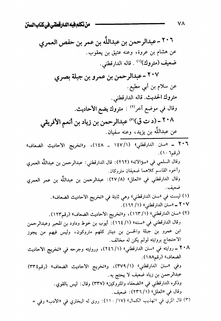 نام کتاب : من تكلم فيه الدارقطني في كتاب السنن من الضعفاء والمتروكين والمجهولين (ط. أوقاف قطر) نویسنده : محمد بن عبد الرحمن بن محمد ابن زريق جلد : 1 صفحه : 78