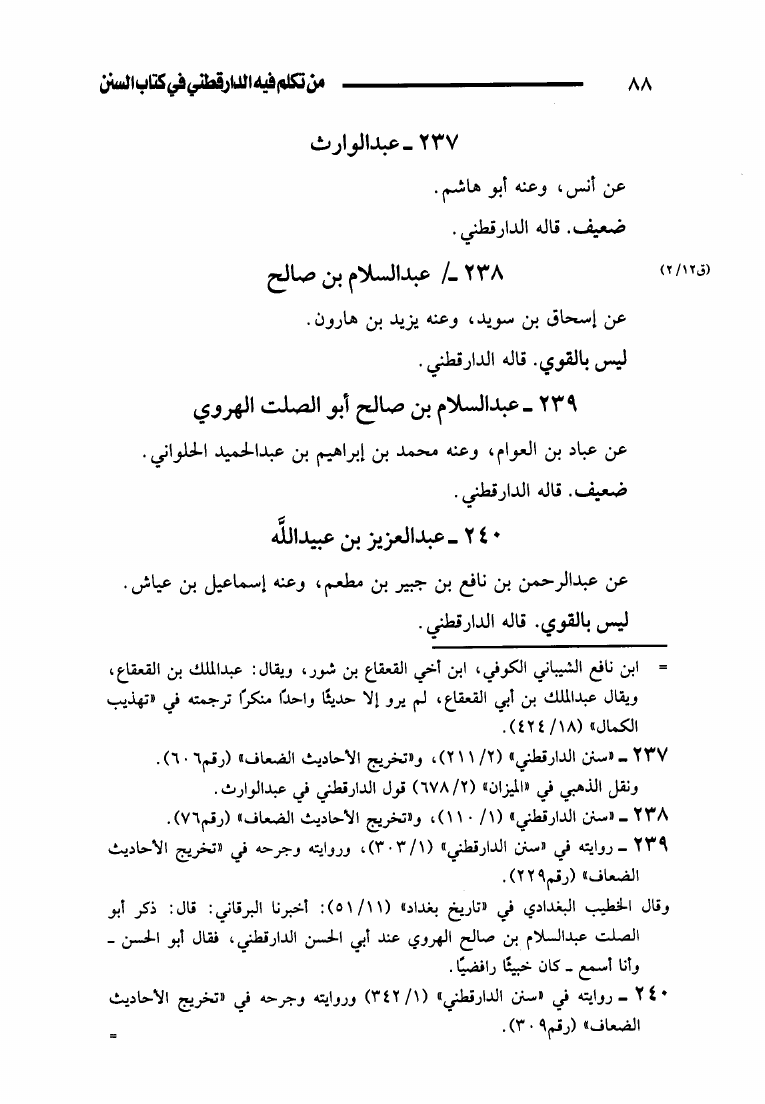 نام کتاب : من تكلم فيه الدارقطني في كتاب السنن من الضعفاء والمتروكين والمجهولين (ط. أوقاف قطر) نویسنده : محمد بن عبد الرحمن بن محمد ابن زريق جلد : 1 صفحه : 88
