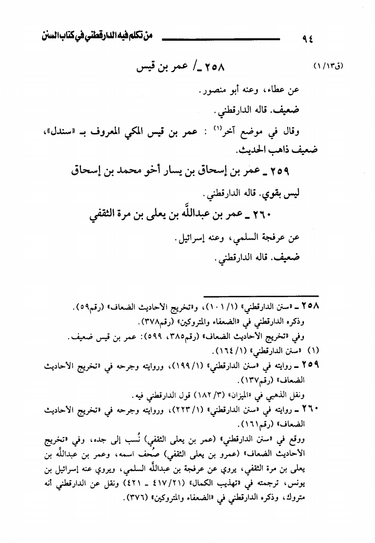 نام کتاب : من تكلم فيه الدارقطني في كتاب السنن من الضعفاء والمتروكين والمجهولين (ط. أوقاف قطر) نویسنده : محمد بن عبد الرحمن بن محمد ابن زريق جلد : 1 صفحه : 94
