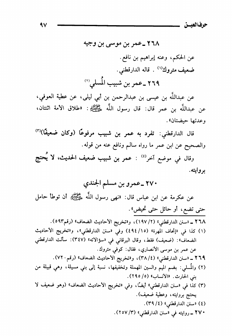 نام کتاب : من تكلم فيه الدارقطني في كتاب السنن من الضعفاء والمتروكين والمجهولين (ط. أوقاف قطر) نویسنده : محمد بن عبد الرحمن بن محمد ابن زريق جلد : 1 صفحه : 97