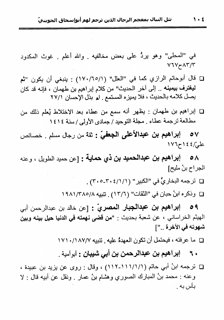 نام کتاب : نثل النبال بمعجم الرجال الذين ترجم لهم فضيلة الشيخ المحدث أبو إسحاق الحويني (ط. المحدثين) نویسنده : أحمد بن عطية الوكيل أبو عمرو جلد : 1 صفحه : 104