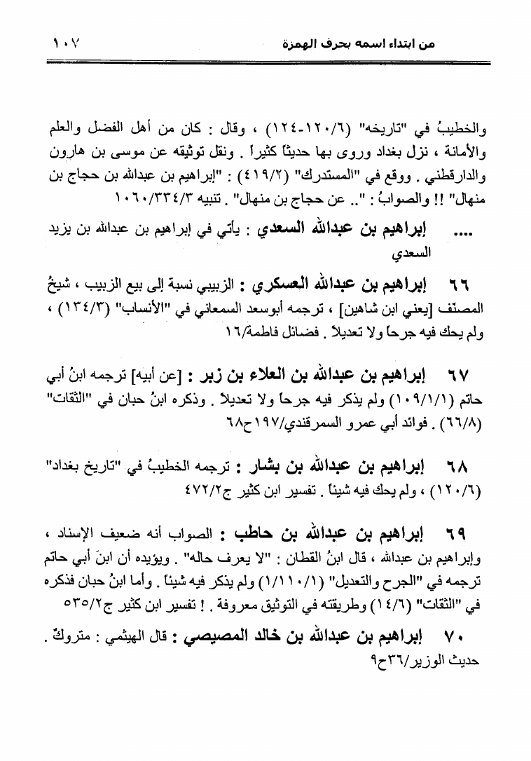 نام کتاب : نثل النبال بمعجم الرجال الذين ترجم لهم فضيلة الشيخ المحدث أبو إسحاق الحويني (ط. المحدثين) نویسنده : أحمد بن عطية الوكيل أبو عمرو جلد : 1 صفحه : 107