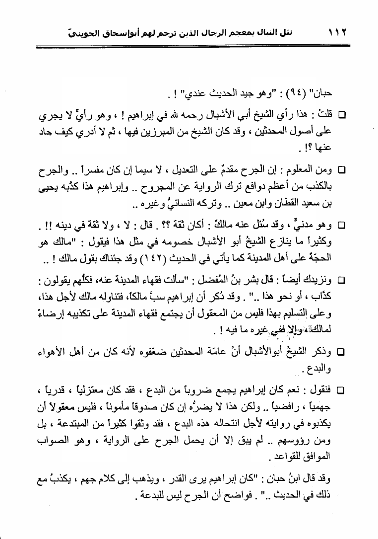 نام کتاب : نثل النبال بمعجم الرجال الذين ترجم لهم فضيلة الشيخ المحدث أبو إسحاق الحويني (ط. المحدثين) نویسنده : أحمد بن عطية الوكيل أبو عمرو جلد : 1 صفحه : 112