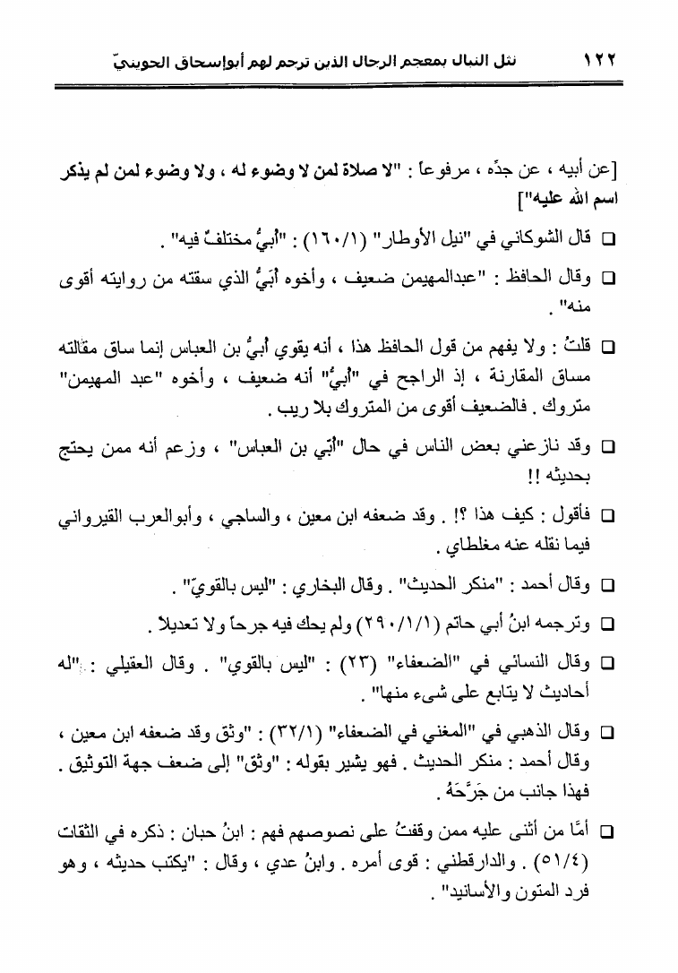 نام کتاب : نثل النبال بمعجم الرجال الذين ترجم لهم فضيلة الشيخ المحدث أبو إسحاق الحويني (ط. المحدثين) نویسنده : أحمد بن عطية الوكيل أبو عمرو جلد : 1 صفحه : 122