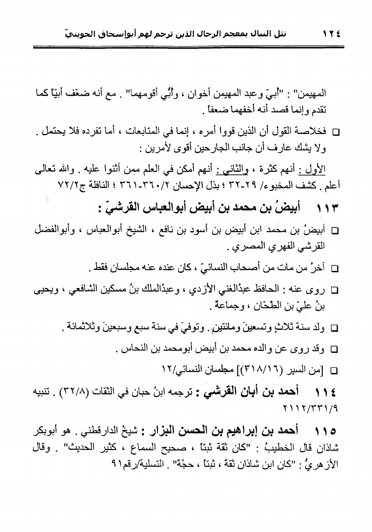 نام کتاب : نثل النبال بمعجم الرجال الذين ترجم لهم فضيلة الشيخ المحدث أبو إسحاق الحويني (ط. المحدثين) نویسنده : أحمد بن عطية الوكيل أبو عمرو جلد : 1 صفحه : 124