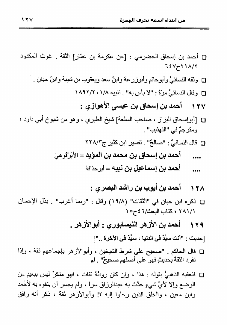 نام کتاب : نثل النبال بمعجم الرجال الذين ترجم لهم فضيلة الشيخ المحدث أبو إسحاق الحويني (ط. المحدثين) نویسنده : أحمد بن عطية الوكيل أبو عمرو جلد : 1 صفحه : 127