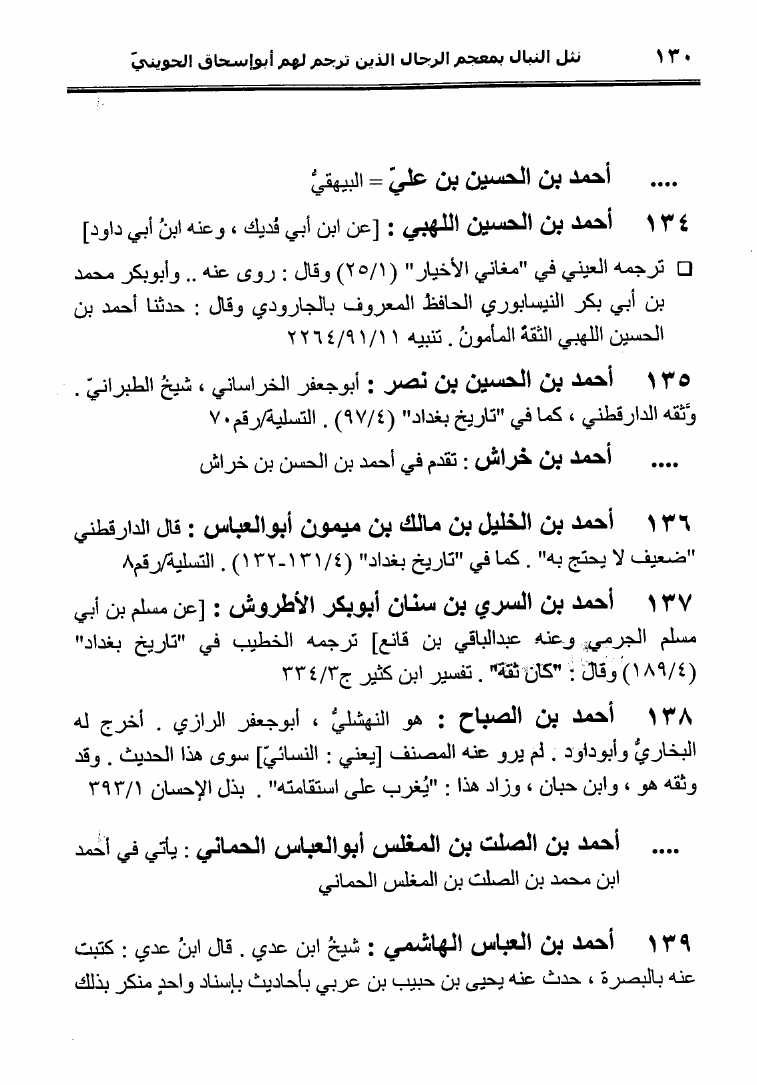 نام کتاب : نثل النبال بمعجم الرجال الذين ترجم لهم فضيلة الشيخ المحدث أبو إسحاق الحويني (ط. المحدثين) نویسنده : أحمد بن عطية الوكيل أبو عمرو جلد : 1 صفحه : 130
