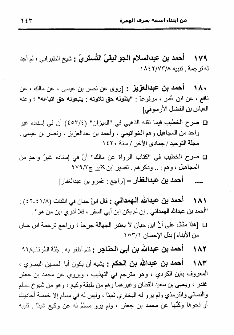 نام کتاب : نثل النبال بمعجم الرجال الذين ترجم لهم فضيلة الشيخ المحدث أبو إسحاق الحويني (ط. المحدثين) نویسنده : أحمد بن عطية الوكيل أبو عمرو جلد : 1 صفحه : 143