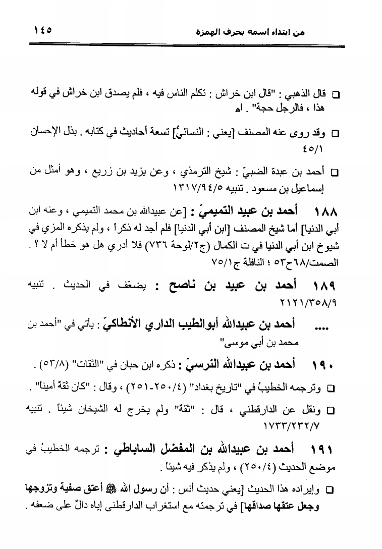 نام کتاب : نثل النبال بمعجم الرجال الذين ترجم لهم فضيلة الشيخ المحدث أبو إسحاق الحويني (ط. المحدثين) نویسنده : أحمد بن عطية الوكيل أبو عمرو جلد : 1 صفحه : 145