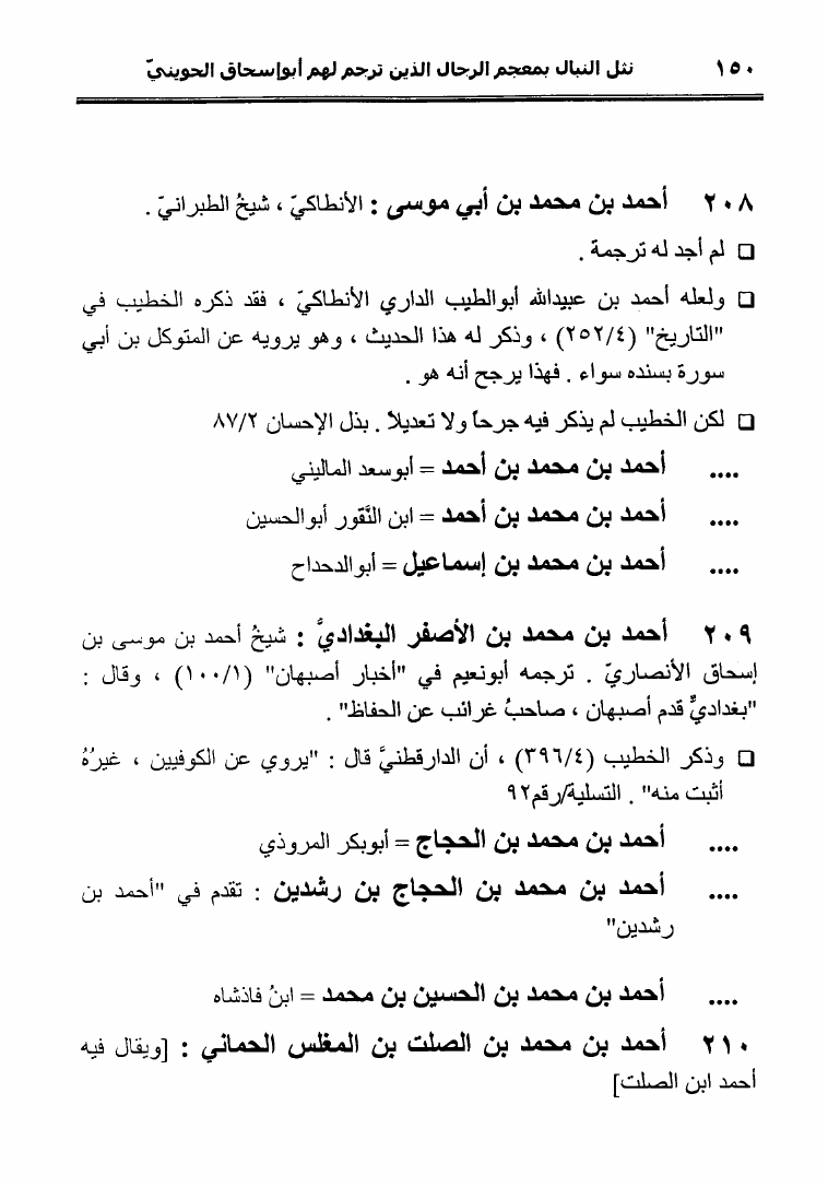 نام کتاب : نثل النبال بمعجم الرجال الذين ترجم لهم فضيلة الشيخ المحدث أبو إسحاق الحويني (ط. المحدثين) نویسنده : أحمد بن عطية الوكيل أبو عمرو جلد : 1 صفحه : 150