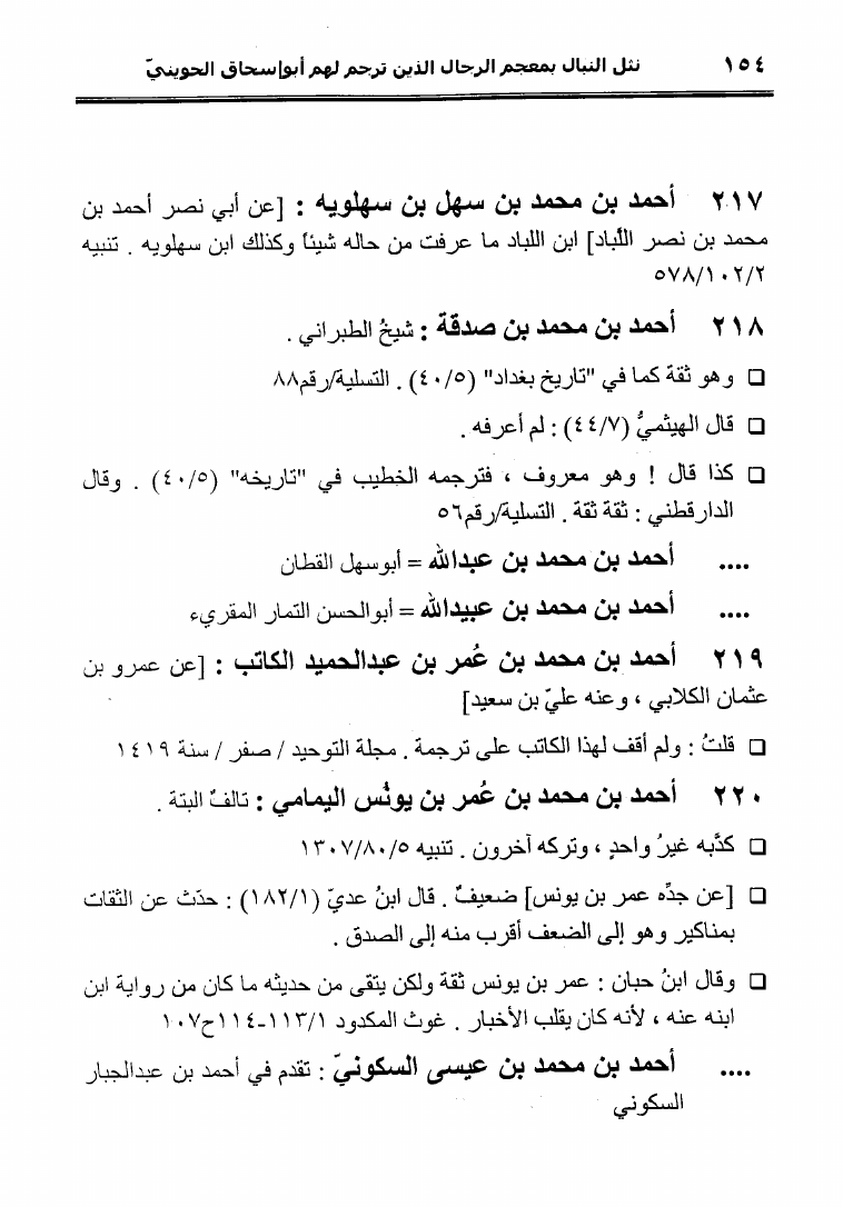 نام کتاب : نثل النبال بمعجم الرجال الذين ترجم لهم فضيلة الشيخ المحدث أبو إسحاق الحويني (ط. المحدثين) نویسنده : أحمد بن عطية الوكيل أبو عمرو جلد : 1 صفحه : 154
