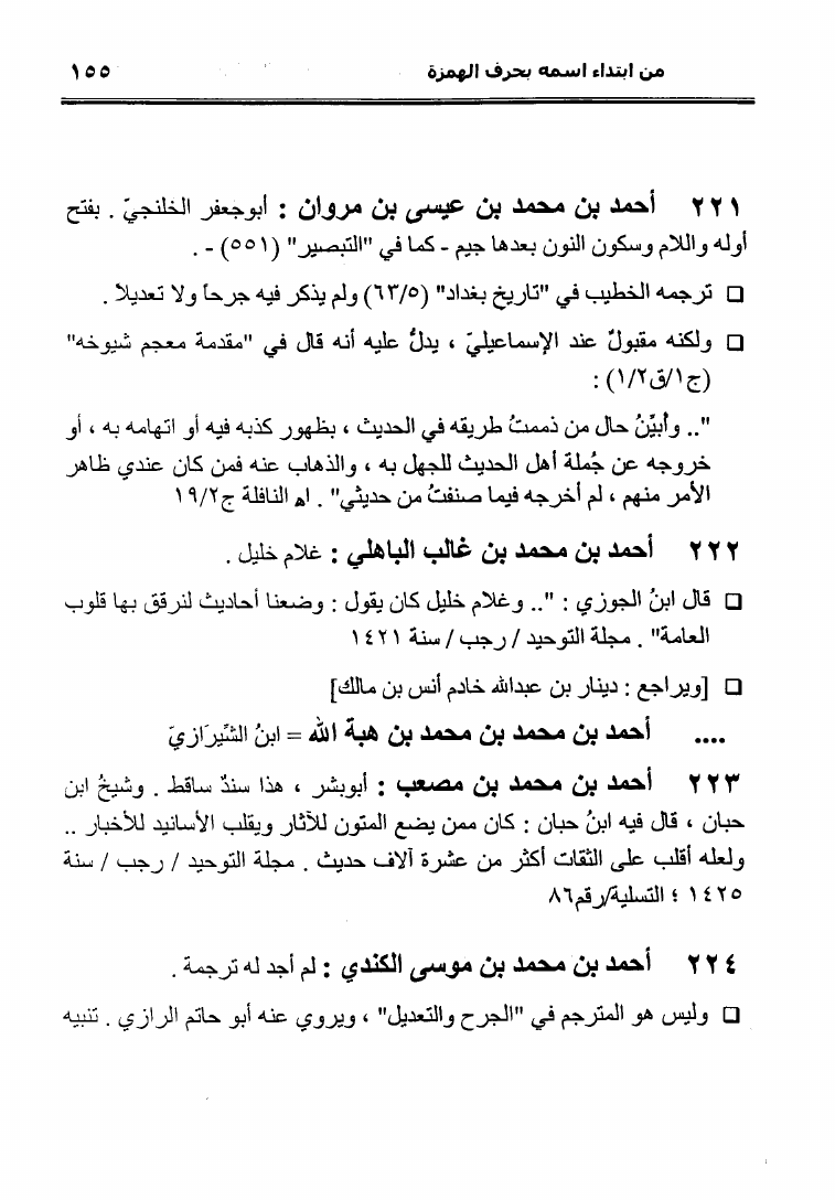 نام کتاب : نثل النبال بمعجم الرجال الذين ترجم لهم فضيلة الشيخ المحدث أبو إسحاق الحويني (ط. المحدثين) نویسنده : أحمد بن عطية الوكيل أبو عمرو جلد : 1 صفحه : 155