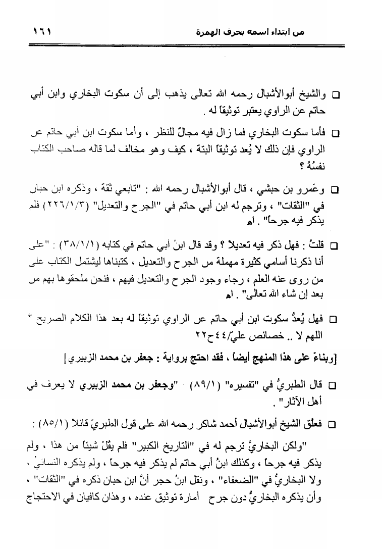 نام کتاب : نثل النبال بمعجم الرجال الذين ترجم لهم فضيلة الشيخ المحدث أبو إسحاق الحويني (ط. المحدثين) نویسنده : أحمد بن عطية الوكيل أبو عمرو جلد : 1 صفحه : 161