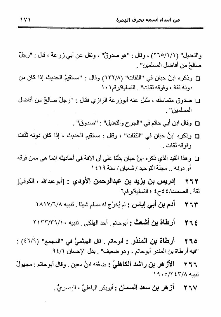 نام کتاب : نثل النبال بمعجم الرجال الذين ترجم لهم فضيلة الشيخ المحدث أبو إسحاق الحويني (ط. المحدثين) نویسنده : أحمد بن عطية الوكيل أبو عمرو جلد : 1 صفحه : 171