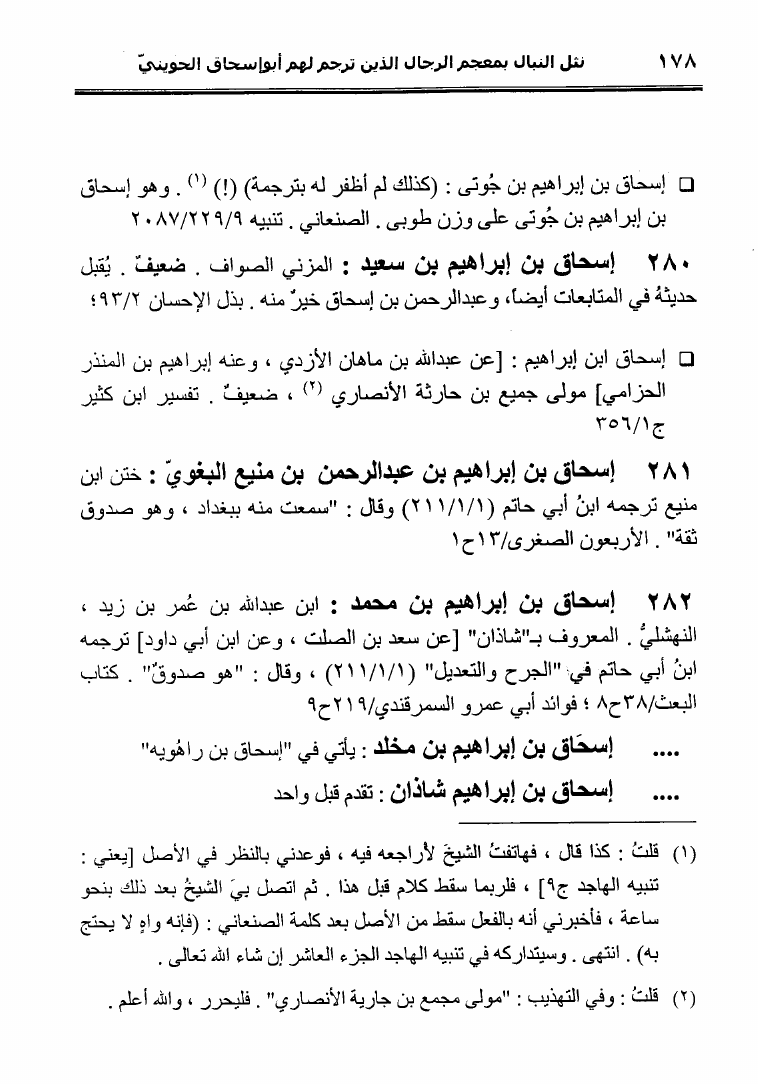 نام کتاب : نثل النبال بمعجم الرجال الذين ترجم لهم فضيلة الشيخ المحدث أبو إسحاق الحويني (ط. المحدثين) نویسنده : أحمد بن عطية الوكيل أبو عمرو جلد : 1 صفحه : 178