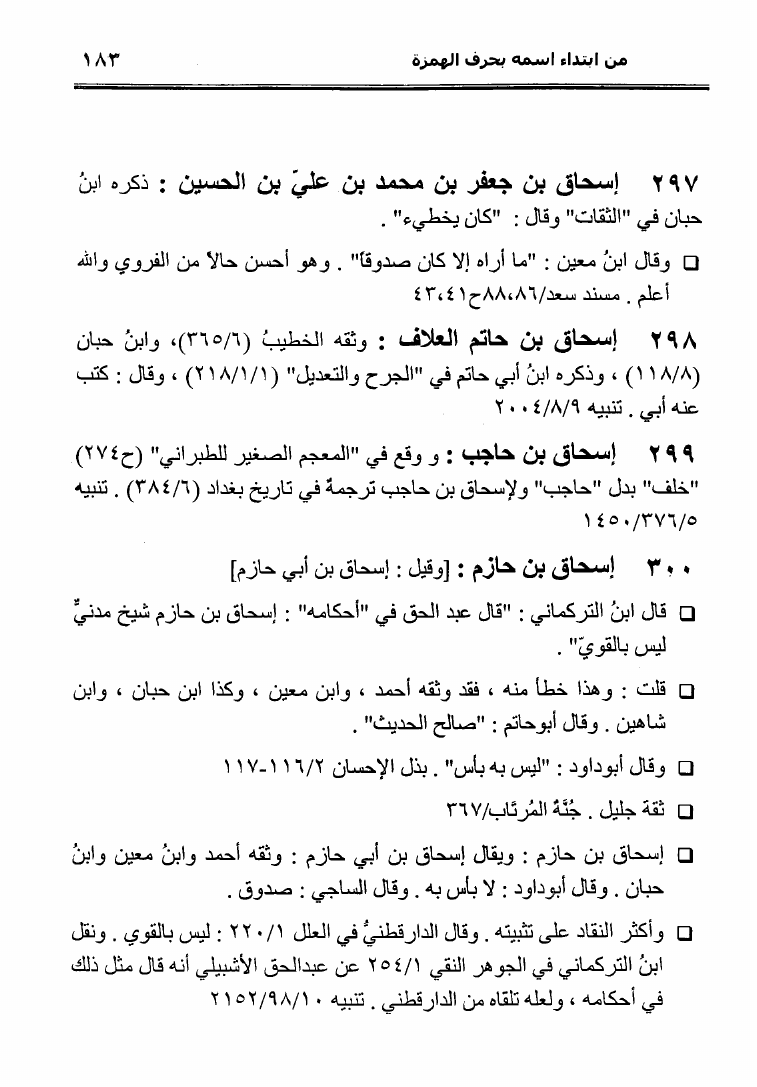 نام کتاب : نثل النبال بمعجم الرجال الذين ترجم لهم فضيلة الشيخ المحدث أبو إسحاق الحويني (ط. المحدثين) نویسنده : أحمد بن عطية الوكيل أبو عمرو جلد : 1 صفحه : 183