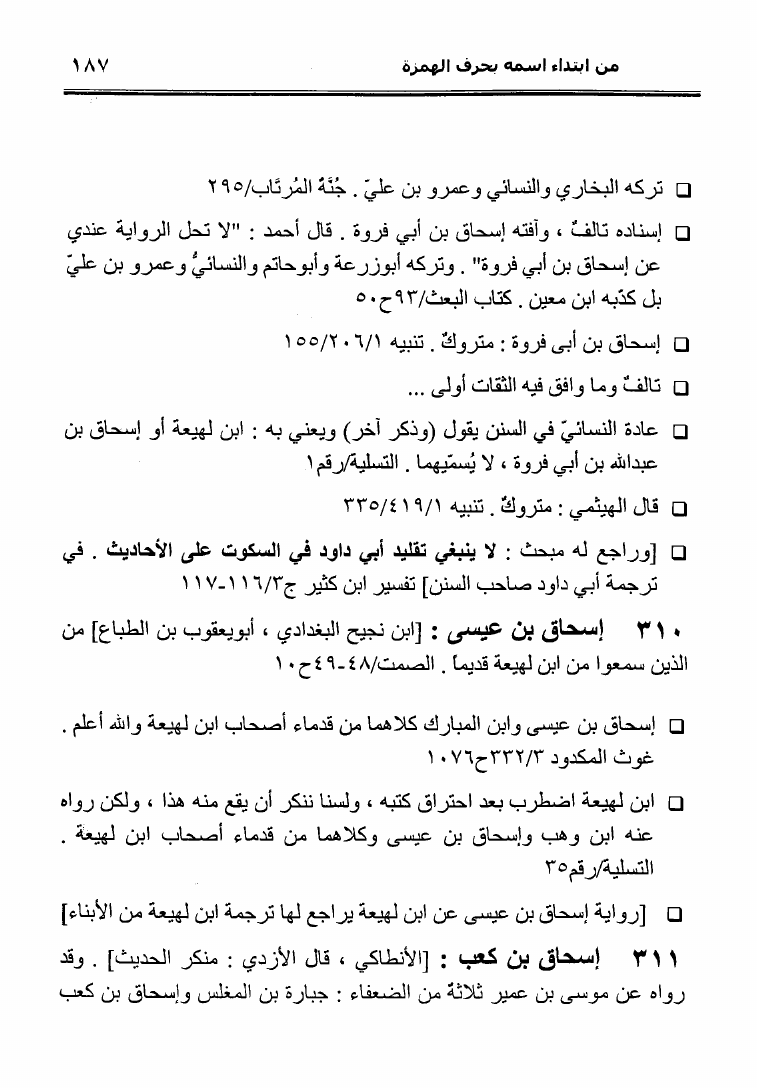 نام کتاب : نثل النبال بمعجم الرجال الذين ترجم لهم فضيلة الشيخ المحدث أبو إسحاق الحويني (ط. المحدثين) نویسنده : أحمد بن عطية الوكيل أبو عمرو جلد : 1 صفحه : 187
