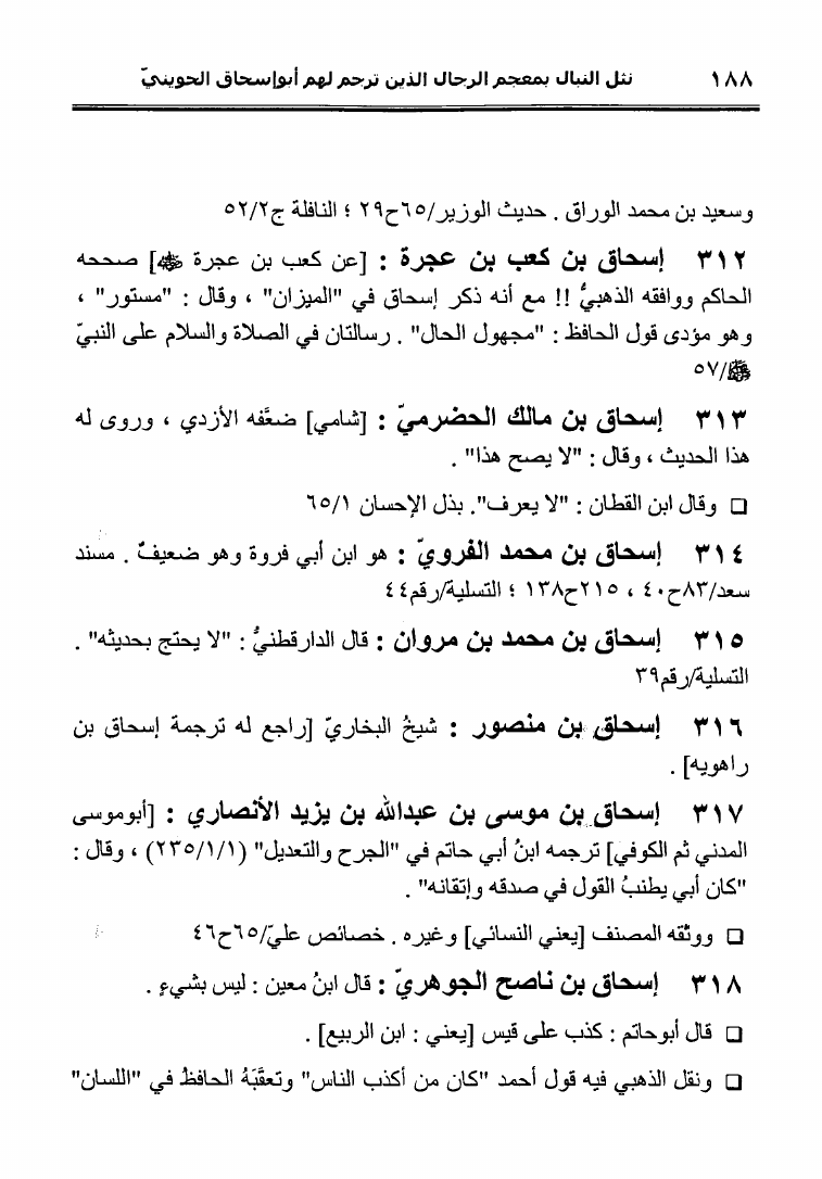 نام کتاب : نثل النبال بمعجم الرجال الذين ترجم لهم فضيلة الشيخ المحدث أبو إسحاق الحويني (ط. المحدثين) نویسنده : أحمد بن عطية الوكيل أبو عمرو جلد : 1 صفحه : 188
