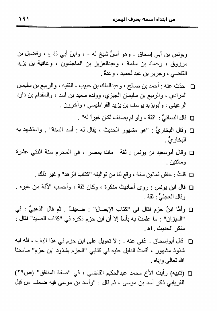 نام کتاب : نثل النبال بمعجم الرجال الذين ترجم لهم فضيلة الشيخ المحدث أبو إسحاق الحويني (ط. المحدثين) نویسنده : أحمد بن عطية الوكيل أبو عمرو جلد : 1 صفحه : 191