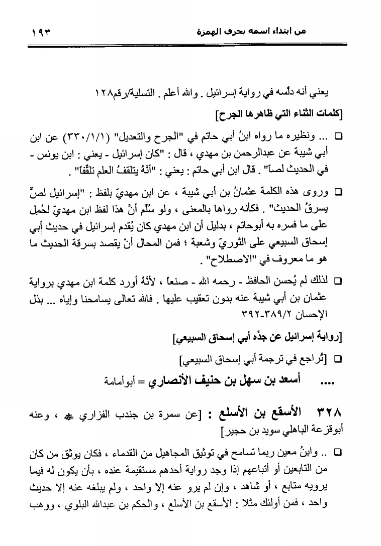 نام کتاب : نثل النبال بمعجم الرجال الذين ترجم لهم فضيلة الشيخ المحدث أبو إسحاق الحويني (ط. المحدثين) نویسنده : أحمد بن عطية الوكيل أبو عمرو جلد : 1 صفحه : 193