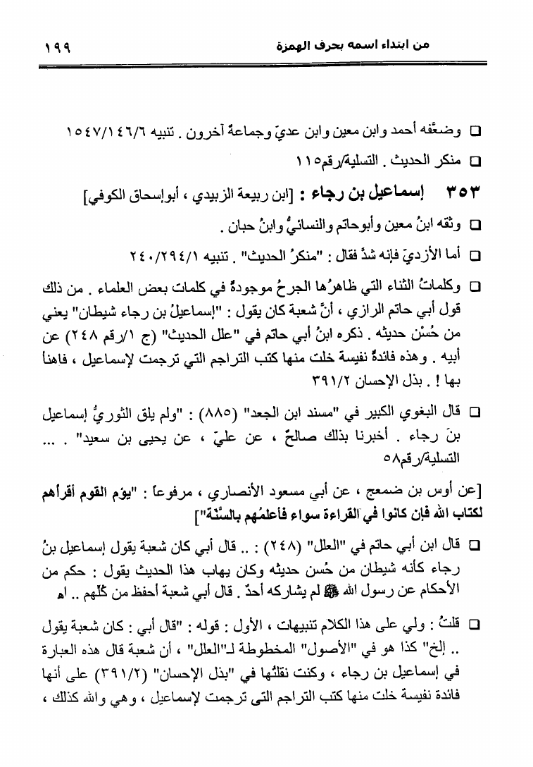 نام کتاب : نثل النبال بمعجم الرجال الذين ترجم لهم فضيلة الشيخ المحدث أبو إسحاق الحويني (ط. المحدثين) نویسنده : أحمد بن عطية الوكيل أبو عمرو جلد : 1 صفحه : 199