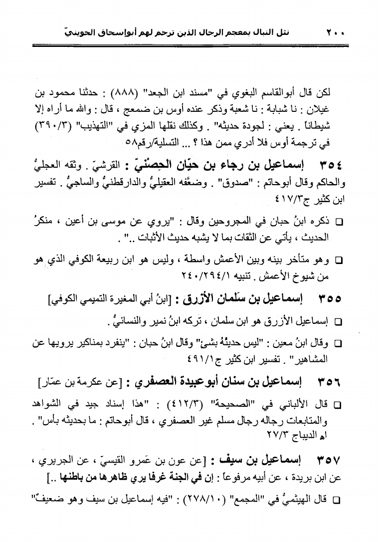 نام کتاب : نثل النبال بمعجم الرجال الذين ترجم لهم فضيلة الشيخ المحدث أبو إسحاق الحويني (ط. المحدثين) نویسنده : أحمد بن عطية الوكيل أبو عمرو جلد : 1 صفحه : 200