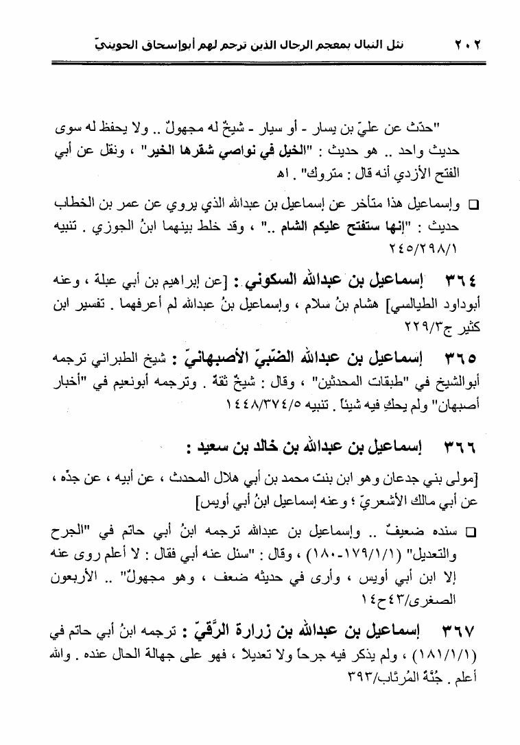 نام کتاب : نثل النبال بمعجم الرجال الذين ترجم لهم فضيلة الشيخ المحدث أبو إسحاق الحويني (ط. المحدثين) نویسنده : أحمد بن عطية الوكيل أبو عمرو جلد : 1 صفحه : 202