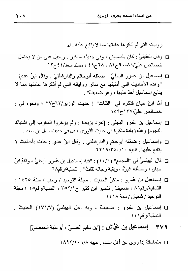 نام کتاب : نثل النبال بمعجم الرجال الذين ترجم لهم فضيلة الشيخ المحدث أبو إسحاق الحويني (ط. المحدثين) نویسنده : أحمد بن عطية الوكيل أبو عمرو جلد : 1 صفحه : 207
