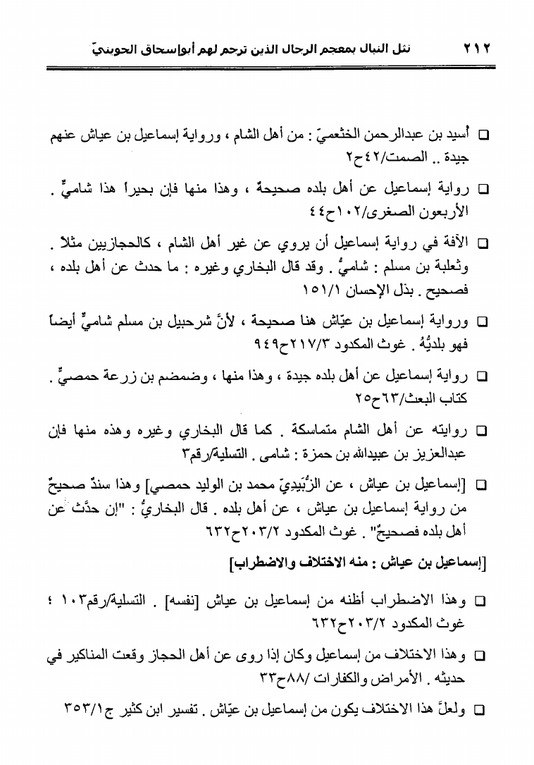 نام کتاب : نثل النبال بمعجم الرجال الذين ترجم لهم فضيلة الشيخ المحدث أبو إسحاق الحويني (ط. المحدثين) نویسنده : أحمد بن عطية الوكيل أبو عمرو جلد : 1 صفحه : 212