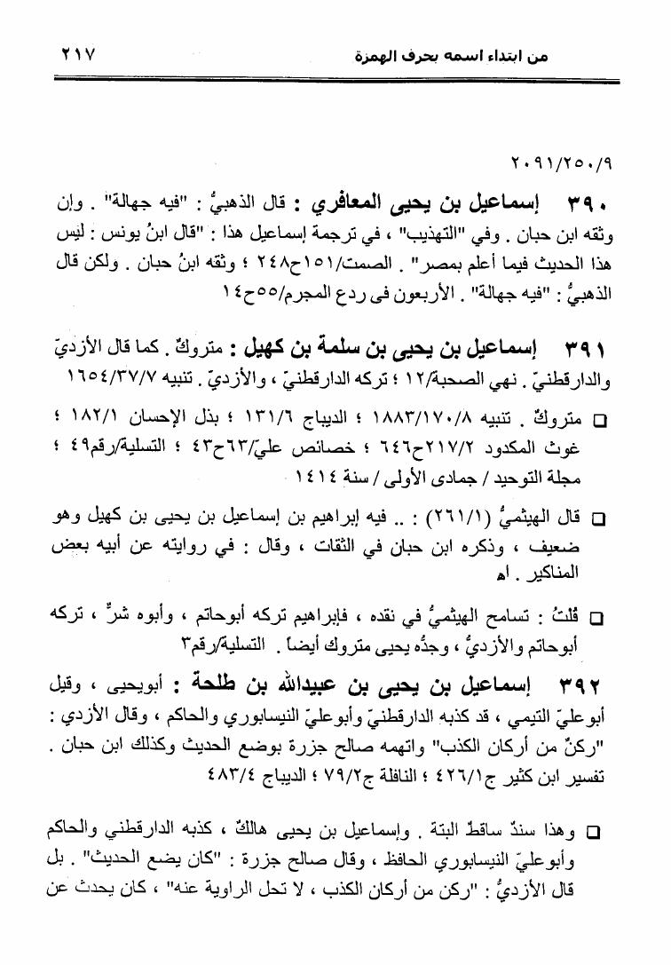 نام کتاب : نثل النبال بمعجم الرجال الذين ترجم لهم فضيلة الشيخ المحدث أبو إسحاق الحويني (ط. المحدثين) نویسنده : أحمد بن عطية الوكيل أبو عمرو جلد : 1 صفحه : 217
