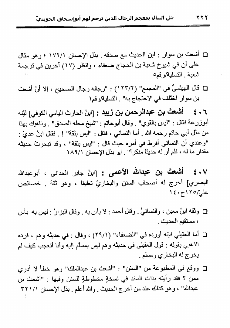 نام کتاب : نثل النبال بمعجم الرجال الذين ترجم لهم فضيلة الشيخ المحدث أبو إسحاق الحويني (ط. المحدثين) نویسنده : أحمد بن عطية الوكيل أبو عمرو جلد : 1 صفحه : 222